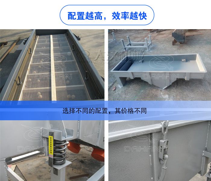 直線振動(dòng)篩網(wǎng)架采用鋼制網(wǎng)架,投料口高于出料口10公分,電機(jī)采用優(yōu)質(zhì)的銅線,故障率低,根據(jù)用戶(hù)選擇,我們的石料直線振動(dòng)篩可以選擇不同的配置,如篩網(wǎng)選擇不銹鋼或碳鋼篩網(wǎng),還可以采用耐磨性更高的錳鋼,選擇不同的配置,其價(jià)格不同,具體根據(jù)用戶(hù)實(shí)際選擇為準(zhǔn)。
