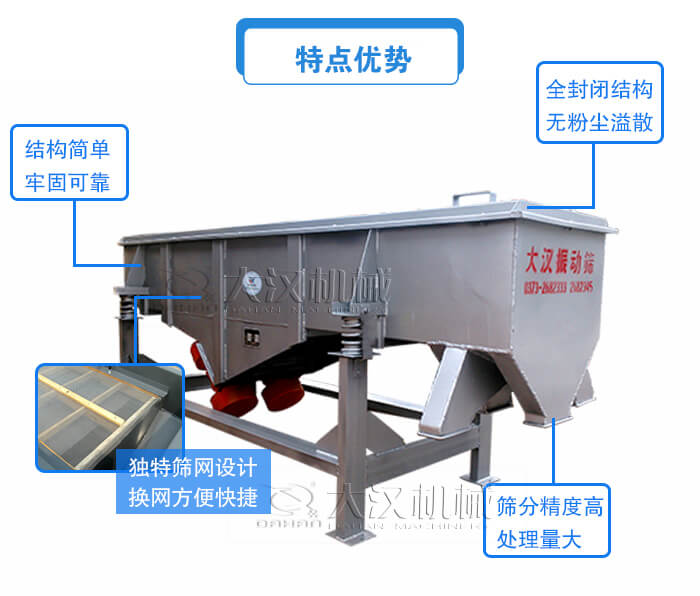 2、直線篩采用全封閉結構,無粉塵溢散,自動排料,更適合于24小時流水線作業;