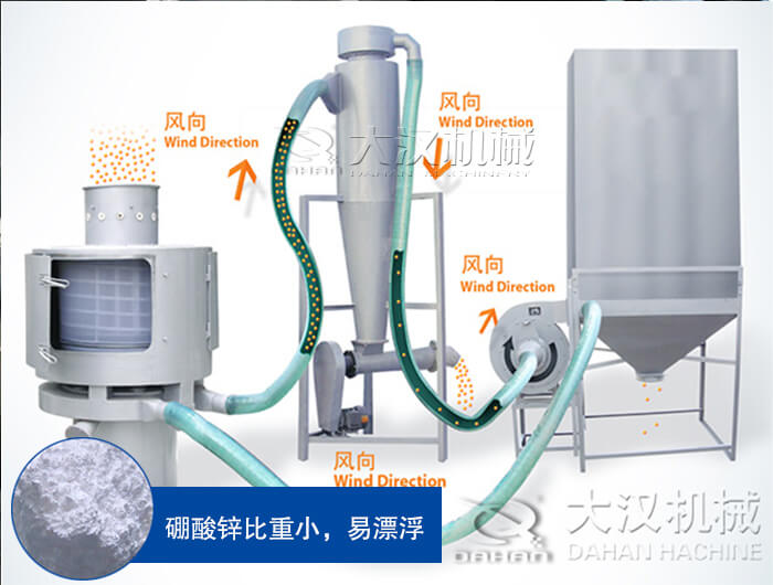 硼酸鋅是種非鹵素阻燃劑,粒度小、比重小、分散性,廣泛應用在塑料、橡膠、涂料等領(lǐng)域,硼酸鋅制備過程中需要使用振動篩對其進行篩分,呢么硼酸鋅篩分使用哪種振動篩比較合適呢?大漢廠家在這里向您推薦我們的氣流篩設(shè)備,主要原因分析如下: