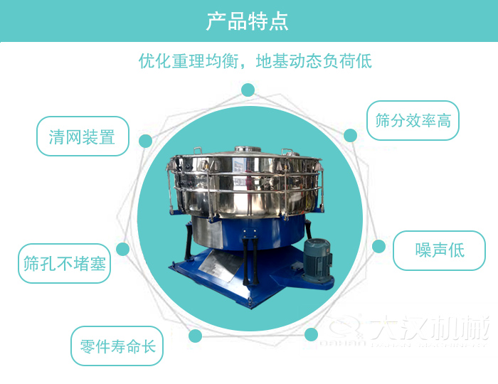 ★因此建立水平與拋擲三維翻滾運(yùn)動(dòng)。物料從中心到外緣在整個(gè)篩面上均勻分散,從而以螺旋運(yùn)動(dòng)往軸向傳播。細(xì)小顆粒從而完成了整個(gè)篩分過(guò)程。