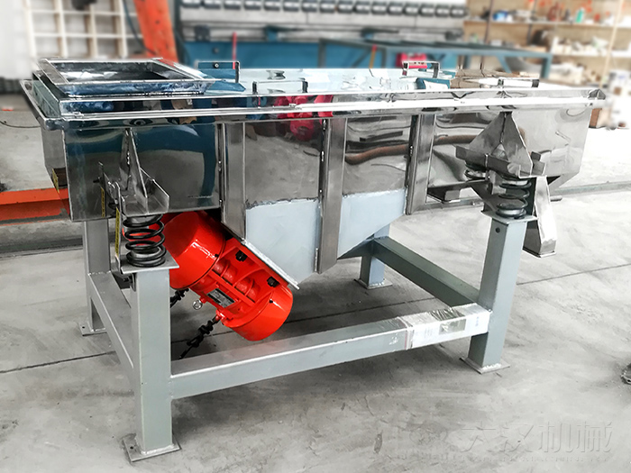 碳鋼直線振動篩主要由篩箱、篩框、篩網、振動電機、電機臺座、減振彈簧、支架等組成。
